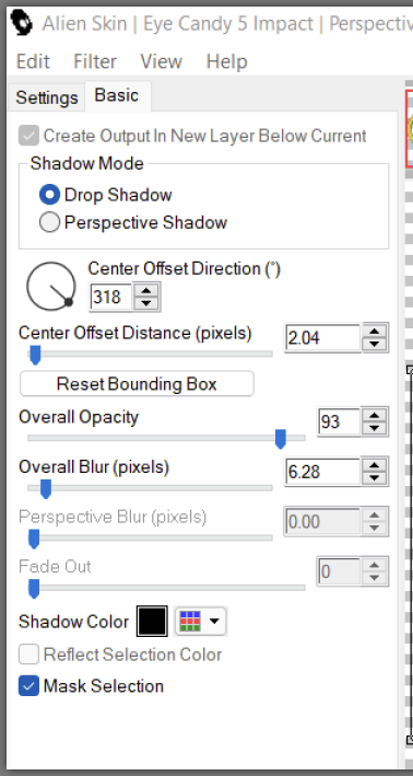 3 : DS apply eye candy impact <<<< perspective shadow settings : drop shadow the lowest