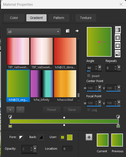 fill with a gradient mine is in the material